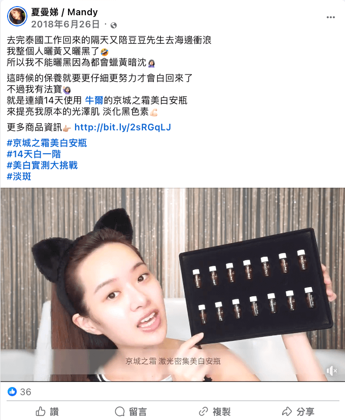 專案項目: 6位當紅美妝 KOL親身實測美白安瓶