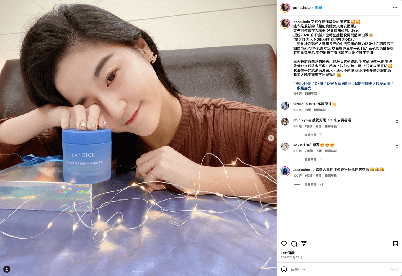 2020 LANEIGE 蘭芝 超能亮睡美人晚安面膜數位專案