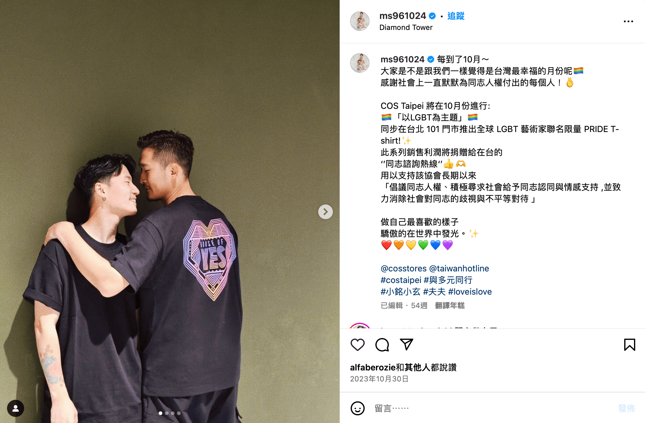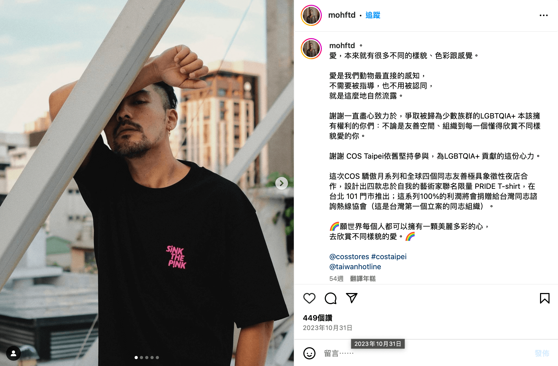專案日期:2023/10/5(四)2023/10/31(二) 捐款單位:台灣同志諮詢熱線協會